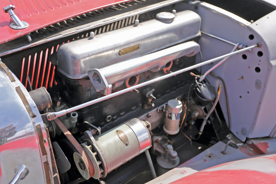 Like so many SS 100s, this car has lost its original engine. This was because back in the day when they were just old cars of no huge value, no thought was given to preserving their originality. In the face of engine wear or trouble, a complete replacement unit was often the most cost-effective solution.