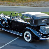 This one-of-a-kind 1938 Packard Twelve (Model 1608) Torpedo-Cabriolet by Kellner was custom built using the rear body section of a 1930 Renault Reinastella Torpedo Scaphandrier by the original owner, who is believed to be George “Geordie” Hormel II, heir to the meatpacking Hormel Foods Corp. and owner of the historic Wrigley Mansion in Phoenix, AZ. During the ...