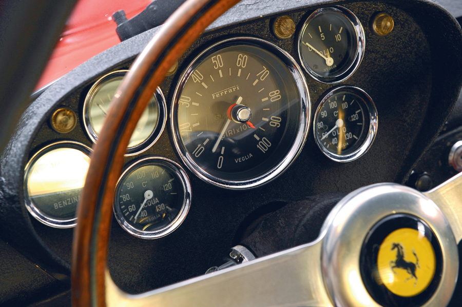 It may be that GTOs are not expected to be kept in pristine condition — or it may be that nearly all of them have suffered previous damage — but despite their incredible value, they are often seen at shows, rallies and vintage races. Even while Bonhams was establishing their world-record sale, a GTO was going full bore around Laguna Seca with a 250 LM and a competition Lusso on its tail.