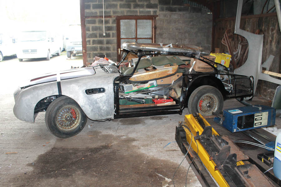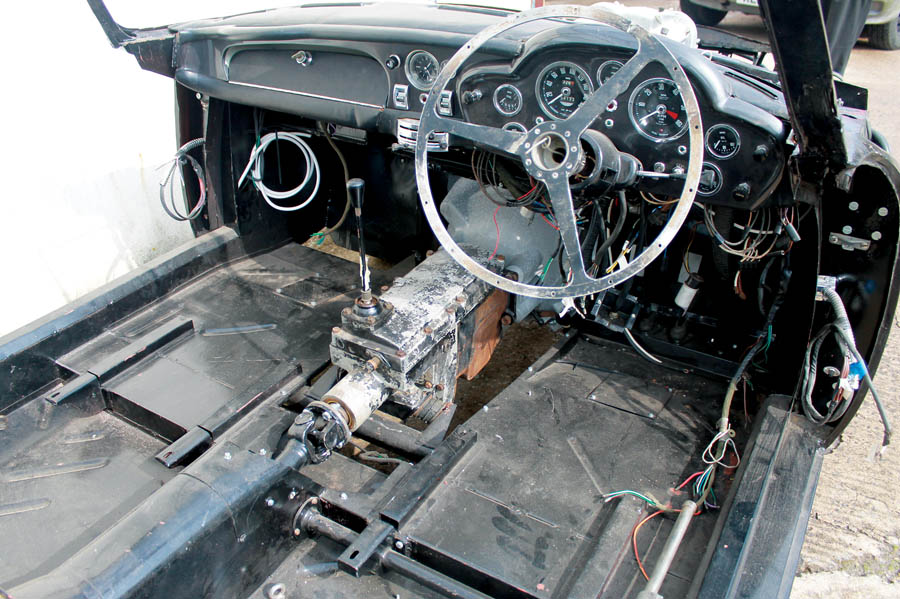Undoubtedly one of the “must-have” cars as well as James Bond’s iconic vehicle, the DB5 continues to generate immense interest among car collectors, owners and users. Understandably so, as the total production of all DB5s over a two-year period was only a little over 1,000 cars. Born of the frustration that Harold Beach had encountered with the DB4, which he claimed was rushed into production ahead of proper development, the DB5 remains the pinnacle of his achievements as a designer. Styled by Carrozzeria Touring of Italy, it used their patented Superleggera body construction and an engine reworked by Tadek Marek, which had been increased in capacity to 4 liters and now produced 282 horsepower on triple SU carburetors. Beach had already had some practice for his magnum opus with the DB4GT and Series V DB4s, using faired-in headlamps to further enhance the appearance. The extra engine power attracted attention like never before despite the “half the price” competition from the E-type Jaguar. Later cars, this one included, were fitted with a ZF 5-speed gearbox. There had not been, and would not be for some years, a car, let alone an Aston, quite as good as the DB5. Many of the DB5s surviving today have undergone complete restorations, often two or three; it is hard to believe that the older examples are now in their 51st year. Consequently, it has become harder to find cars with matching numbers and a continuous record of activity; or inactivity, as is the case with DB51497R. Registered as EAF 2, this DB5 was delivered to its first owner on April 9, 1964, via Brooklands of Bond Street. The car is said to have been subject to frontal collision damage in the early 1970s and was bought as a rebuild project. It was almost completely dismantled and the parts dry-stored. Work has been carried out on it since, but there is no accurate record of what has been done and when. However, a record of the original purchase and many other documents related to the car come with it, together with a Works manual, V5 registration document and a series of photographs which may be of early repair work. There is evidence of repair to the nose and nearside area of the chassis. The cockpit and boot floors appear sound. The car is rolling, with the suspension and brakes in place front and rear. It is not known if the brakes, suspension and Selectaride mechanisms have been refurbished, but the brake pipes appear to have been renewed recently. The wheels appear to be original but are in need of renovation. The tires appear to be 1970s in origin. There are two front-end body assemblies. One, for a DB5, appears to be new and made relatively recently. The other, for a DB6, is old with some poor repair work. The rear coachwork and sills have been cut away as an assembly. There is no roof. A bonnet, said to be from another DB5, is included but has not been measured against the new nose. The boot lid is included together with both doors complete with winder mechanisms, motors, handles and chromed window surrounds. The correct engine (according to the AMOC Register and the accompanying British Motor Industry Heritage Trust certificate) has been refitted but is said not to have been looked at since the car’s acquisition in 1974. The manifolds, starter motor, dynamo, carburetors and other ancillaries have been removed. The ZF gearbox is installed and the prop shaft turns when the car is pushed. The dashboard is in place and appears complete, while the handbrake lever and control pedals are present also. The original green front seats and rear squab were treated with hide food recently. The rest of the original trim, including door liners, is present together with the original black carpets (marked for use as templates). There is no headlining. There is a box of what are almost certainly new trims and door/window seals — possibly a complete set. The wiring loom has been replaced with a period-correct item. The headlamps and nacelles appear to be missing, but the taillamps are present. Several ancillaries remain in place on the bulkhead. Sold strictly as-viewed, this is a challenging project but nevertheless one that, once completed, will give immense satisfaction to the car’s new owner.