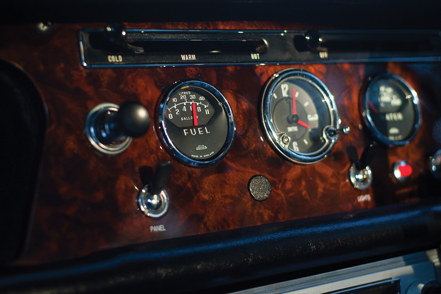 The cockpit is exceptional, with a beautiful wood dash and logical gauge layout topped off with an attractive wood-trimmed steering wheel. Other portions of the car could have been finished with a more refined look, and the wheels, although stock to the configuration, look a tad too modern for the balance of the car. Still, it’s all GT — and a car very suitable for touring in dubious weather.