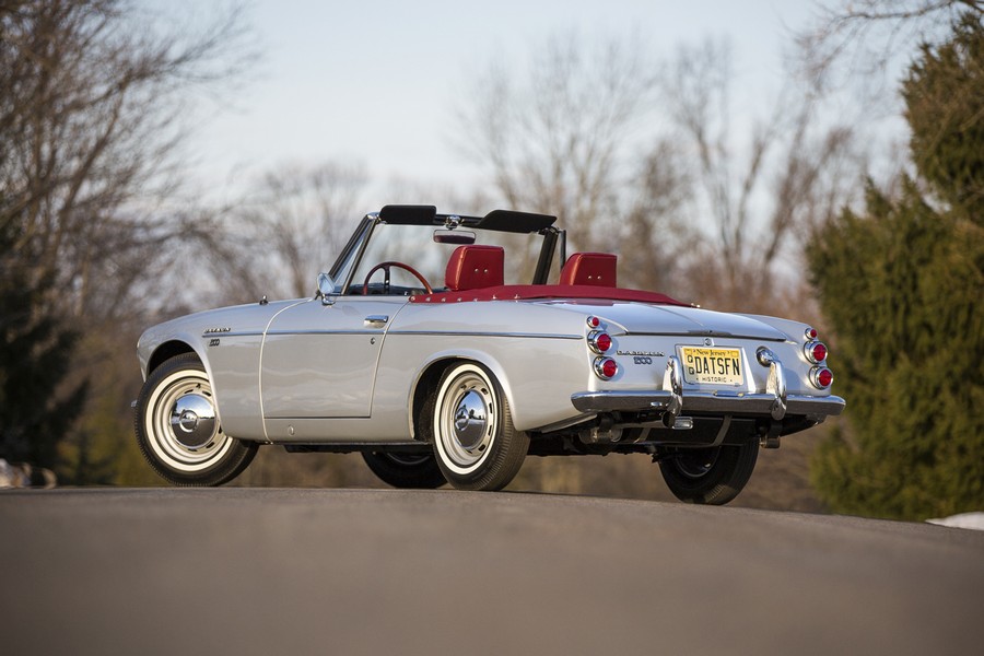 This Datsun 1600 SPL311 is a perfect example of the model. Appearing here in its original colors of Silver Grey Metallic (code #666) and smart red vinyl bucket seats, this roadster was meticulously restored last year. Originally purchased in Arizona, the car was quite original at the commencement of the restoration and is what might affectionately be called a “true survivor.” The Datsun was totally disassembled, the body stripped and repainted, and then finished to replicate the factory-original presentation. All components were inspected and refurbished to original specifications, with the majority of NOS and replacement parts obtained direct from Datsun Parts in Northridge, CA. The brightwork was replated by Frankford Plating in Philadelphia, PA, and Trim Specialties of Lambertville, NJ, was commissioned to install the canvas convertible top and correct vinyl interior in complementary red. Several desirable upgrades were made to the car during restoration, including the installation of a Datsun 5-speed manual transmission to facilitate highway cruising, and a hidden radio amplifier to make that cruising ultimately more enjoyable. The car has accrued approximately 42,000 miles, and only 1,000 since the completion of the restoration. The consignor has entered the roadster in several events and notably has won First in Class and Best in Show at the Datsun Region Meet at Watkins Glen and the Antique Automobile Club of America Senior Award at Hershey in 2013, after which it was requested for display at the AACA Museum. Numerous awards, badges, and trophies accompany the sale of the car. The 1600 roadster is additionally accompanied by its original data plate, documented photo history of the restoration with receipts and records, and several original Datsun publications as well as its original transmission.SCM Analysis
