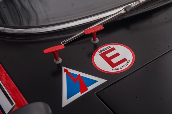 The car has been returned to Group 4 specification with aluminum panels, magnesium alloy wheels, race/rally-prepared engine, 5-speed competition gearbox, foam-filled long-range fuel tank, FTA six-point roll cage, FIA seats and harnesses, fully plumbed fire extinguisher, master cutoff switch and Plexiglas windows.