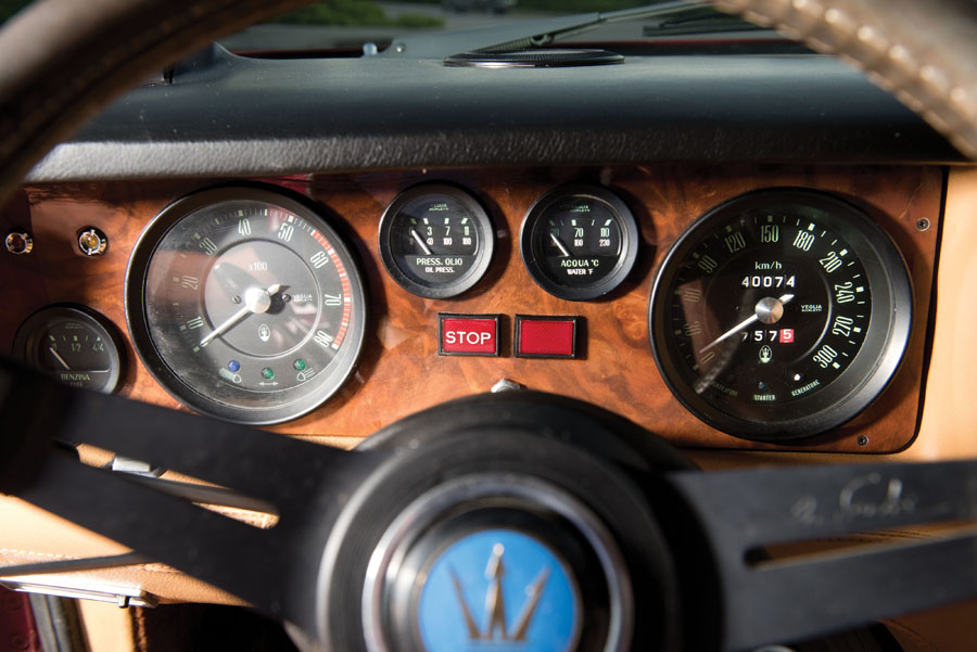 This Maserati came from the collection of the Cayman Motor Museum on Grand Cayman Island, which has been closed for renovations. From the catalog images, the bodywork appeared relatively straight, although the left door fit was a bit off, and the interior showed wear somewhat in excess of the indicated 40,000 km (24,854 miles).