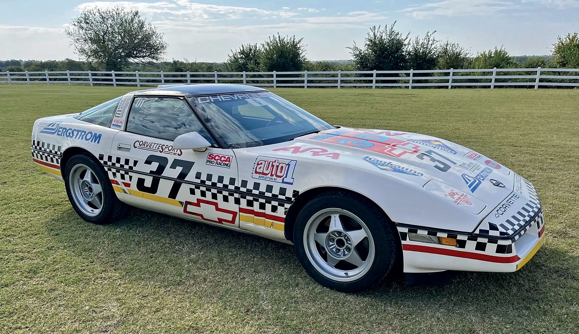 This 1988 Chevrolet Corvette is one of approximately 50 prepared by Protofab for Bergstrom Racing to compete in the SCCA 1988 Corvette Challenge spec series. Each was fitted with race equipment consisting of a full roll cage, an onboard fire-suppression system, racing seats, Bilstein shock absorbers and 17-inch Dymag wheels. This example was …
