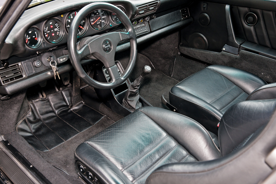 To help stiffen the tub, a full roll cage was integrated into the spartan RS-like interior. A 1972 911-style outside oil filler was used because the oil tank had to be relocated to accommodate one of the intercoolers. The suspension was up-rated, and the rear fenders were widened slightly to accommodate lightweight 17-inch Speedline wheels carrying Dunlop Denloc tires. The brakes were 13-inch Brembo four-piston units. The CTR weighed in at more than 400 pounds lighter than a Factory 930.