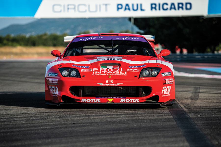 Like many of the great racing cars of the past 100 years or so, the existence of the Prodrive Ferrari 550 GTO required the fortunate confluence of a series of largely unrelated circumstances. The first was Ferrari’s decision to reintroduce the front-engine V12 grand touring car, 23 years after the 365 GTB Daytona had been replaced by a series of mid-engine models. The 550 Maranello was a relatively light two-seater that used a 5.5-liter, twin-cam, four-valve engine mated to a 6-speed transaxle. It was the last Ferrari to be offered with a strictly manual transmission and was a great success, with more than 3,000 coupes built between 1996 and 2002.