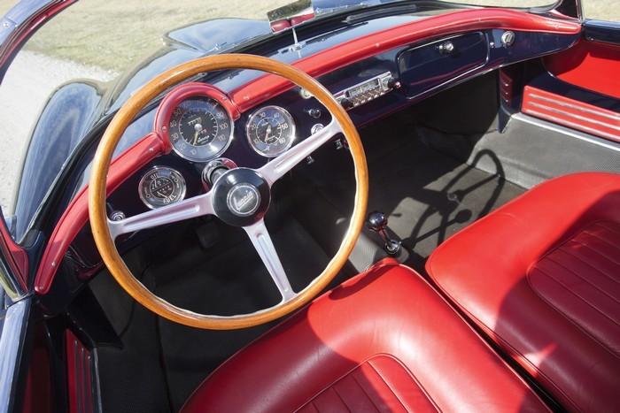 This car is among the rare survivors, having resided for its entire life in the forgiving western United States. In 1992, it was owned by the president of the U.S. Lancia club, who also was an avid vintage racer. He had the car cosmetically restored by Italian Lancia expert Franco dePiero, and his full-time mechanic restored the car’s numbers-matching drivetrain. During the restoration, the original Weber carburetor was replaced with a period-correct Nardi twin-carburetor conversion setup — which, along with the Borrani center-lock wire wheels and the signature Nardi steering wheel, completes the highly desirable Nardi package. Today, this remarkable Spider remains in high-point condition, a testimonial to both the quality of the car before restoration — and the caliber of the restoration itself. Only minor evidence of aging can be found upon close examination, but with careful use, the car will mellow gracefully, gradually acquiring the patina of a lovely, untouched original. These stunning Spiders are highly prized by their intensely loyal owners. They offer a nearly ideal combination of desirable characteristics: They are fast, with delightfully nimble handling, quick and responsive steering, and undeniable grace and beauty. Their racing bloodlines and thoroughly sporting manner make them not only eligible for, but ideal candidates to participate in, any important driving event worldwide. They are seldom, if ever, offered. Within the U.S, only a handful survive of this quality.Lancia Aurelia B24 S Spider America 1123