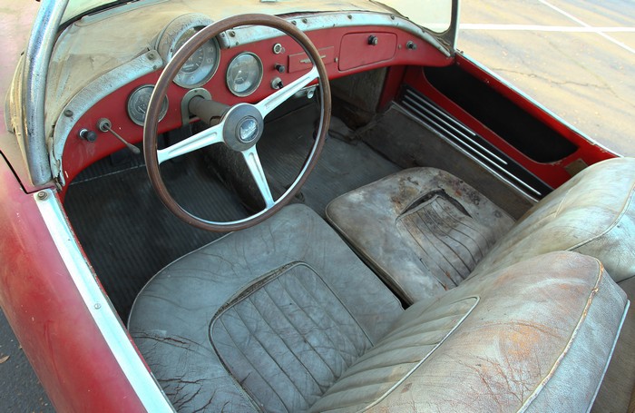 So, while the paint might shine up a bit, why preserve it? Inside, the seat leather was like peanut brittle — split, cracked and ready to break off at the next touch. Some on the scene posited that it might be salvageable, but the matching leather trim strip at the base of the windshield had shrunk to invisibility, and it would have to be replaced. Once that was done, you couldn’t leave the old seats, and so on.